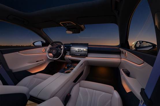 首先是全球首发的“浩瀚星空顶”,在LV分区调光天幕中嵌入了500颗独立星粒,厚度仅增加1毫米,不影响空间与视野。用户可一键点亮专属星座,配合迎宾、节日彩蛋等场景模式,将每次出行变为与星空的浪漫对话,同时具备87%的能量隔绝与近100%的紫外线阻隔能力。
