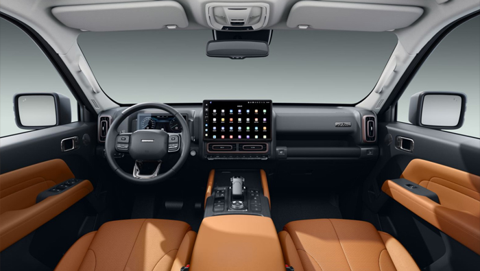 辅助功能配置方面,新车将提供包括低速越野巡航、坦克转弯及540°全景影像,分别降低操控负担、缩小转弯半径、消除视野盲区。该车还标配2.5吨拖车资质,可拖拽房车、摩托等装备,拓展户外用途。高强度车身与车架则提供安全保障。