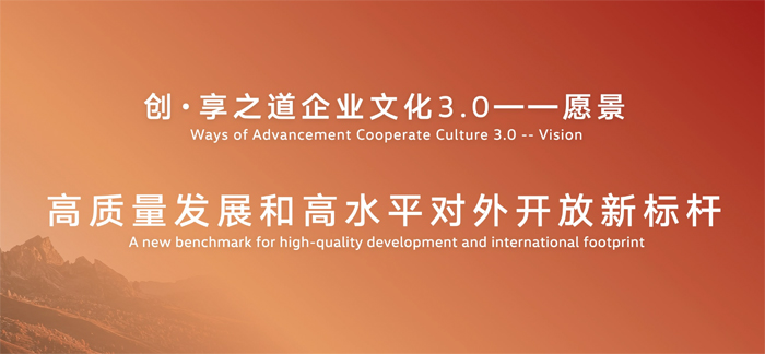 发布创·享之道企业文化3.0:以“高质量发展和高水平对外开放新标杆”为全新愿景,以“造价值经典汽车,创智慧出行生态,促人车社会和谐”为全新使命,确立“诚信创造价值,尊重成就共赢”的核心价值观与“以客户为中心的长期主义、利他主义”经营哲学,将“一汽-大众 一起出众”作为全新企业文化的核心。焕新企业文化,将文化软实力转化为企业发展的不竭动能。