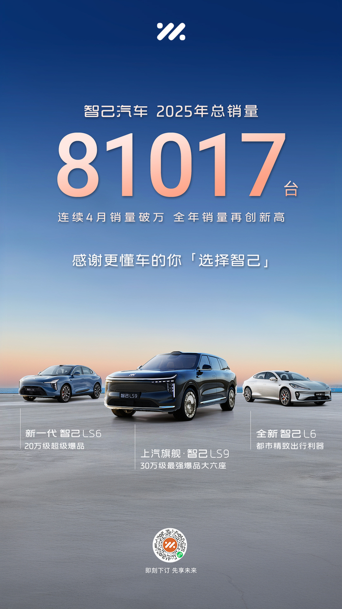 最新数据显示,智己汽车2025年全年累计销售81,017台,创历史新高;自9月起连续四月销量破万,接连刷新品牌月销纪录,增长势头强劲。尤为关键的是,在品牌成立五周年之际,智己于12月首次实现全成本口径盈利,开启高质量发展新阶段。