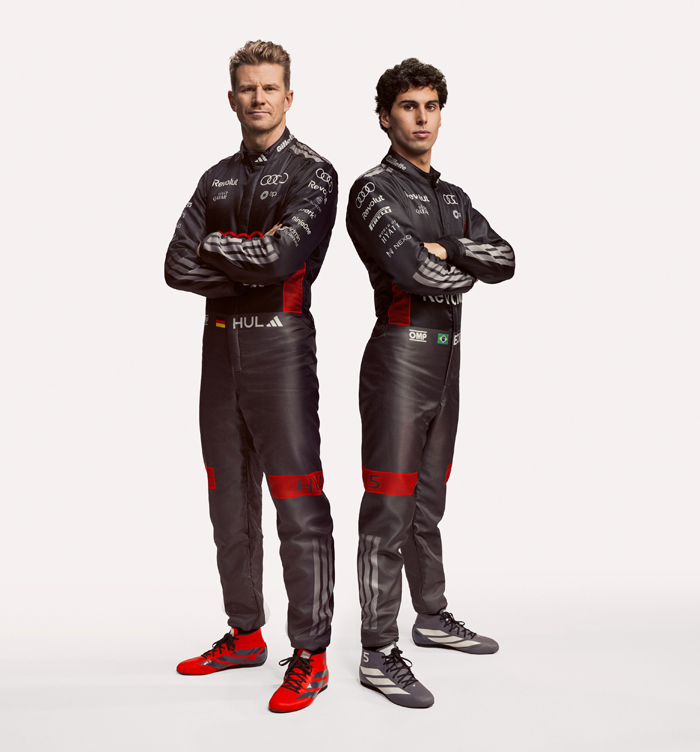 在柏林的发布会上,除了揭幕赛车涂装及其他合作伙伴外,车队领队乔纳森·惠特利(Jonathan Wheatley)与奥迪F1项目总负责人马蒂亚·比诺托(Mattia Binotto)还一同揭晓了全新车队制服及车手赛车服。这两款装备将在2026赛季由奥迪车手——来自巴西的加布里埃尔·博托莱托(Gabriel Bortoleto)和来自德国的尼科·霍肯伯格(Nico Hülkenberg)正式穿着。配套推出的车迷系列服饰将于2月19日起通过车队官网及adidas平台发售。这是为奥迪Revolut F1车队精心打造的视觉识别体系之一:一套独特的团队标识,包括专属配色与全新字体家族,从赛道形象到社交媒体露出,既彰显鲜明个性,又延续奥迪一以贯之的辨识度。