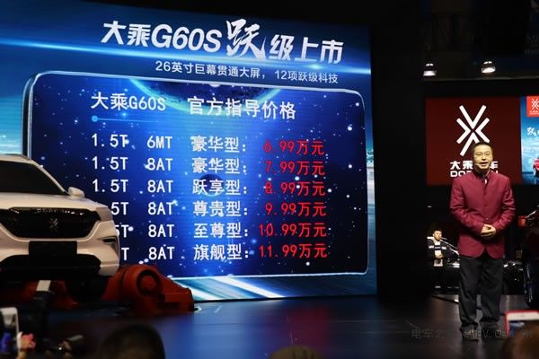 三车齐发 跃级科技开启驾乘新体验 在此次上海国际车展上,大乘汽车带来了乘用车、商用车、新能源车全系产品。其中,大乘汽车战略车型、跃级科技SUV G60S在发布会上正式上市。